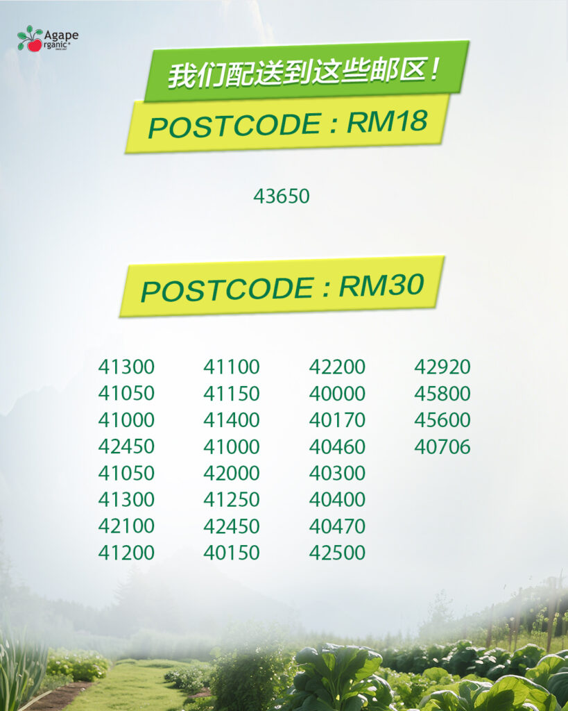 每逢星期一中午 1点结单,同一星期的星期三 (下午 1pm – 6pm 发送)